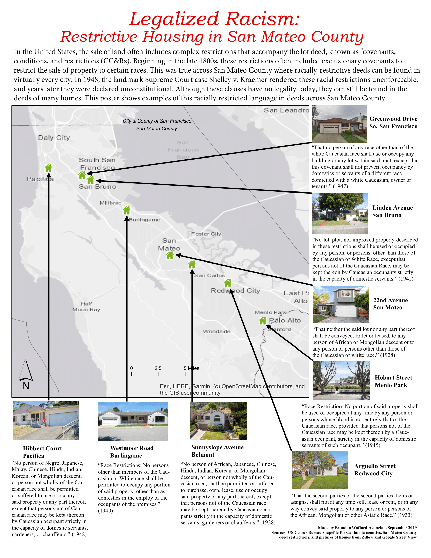 One San Mateo and other event co-sponsors also shared materials at the event highlighting the role of racially restrictive housing practices in San Mateo County. One poster, prepared by researcher Brandon Wofford-Asuncion on behalf of event co-sponsors, highlights examples of homes whose deeds still contain restrictive clauses today.